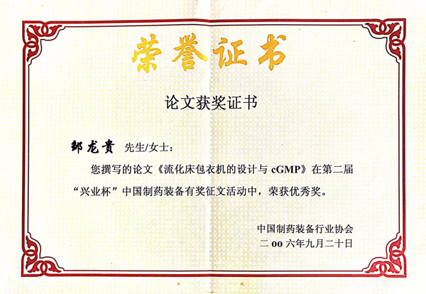 獲獎證書